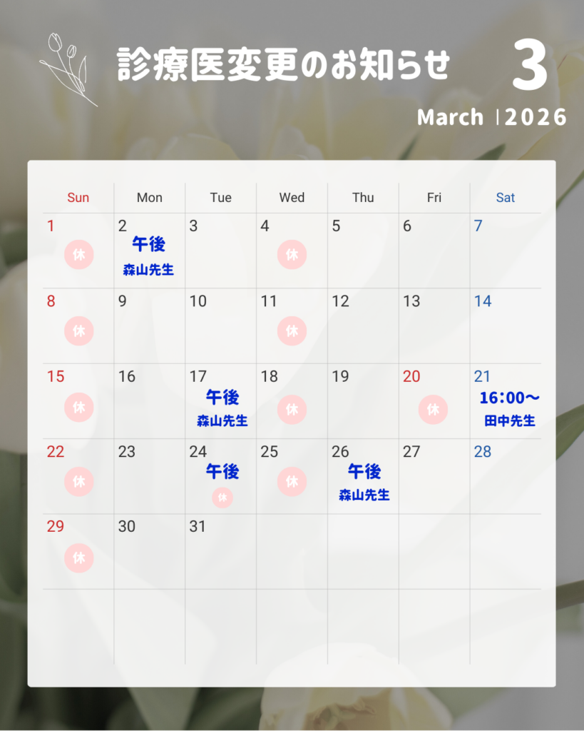 【 3月の診療医変更のお知らせ 】